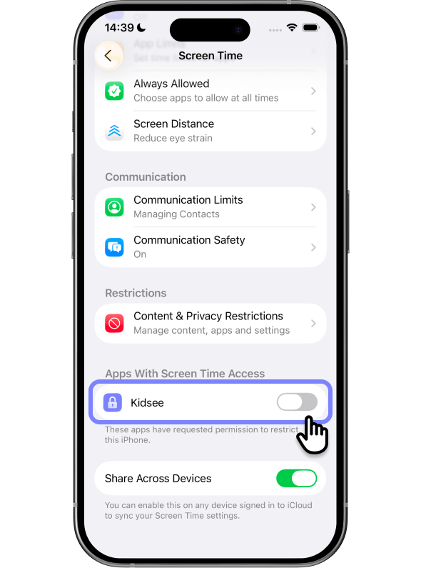 If you try to delete the Kidsee app from your child's device but the "Delete App" option is missing, it means Screen Time is protecting it from being removed. This is expected behavior.