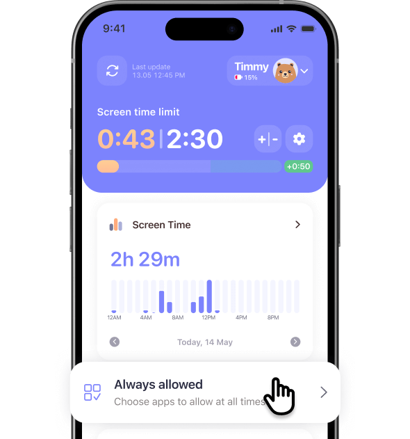 You can make key apps available to your child at all times by adding them to the Always Allowed list.
